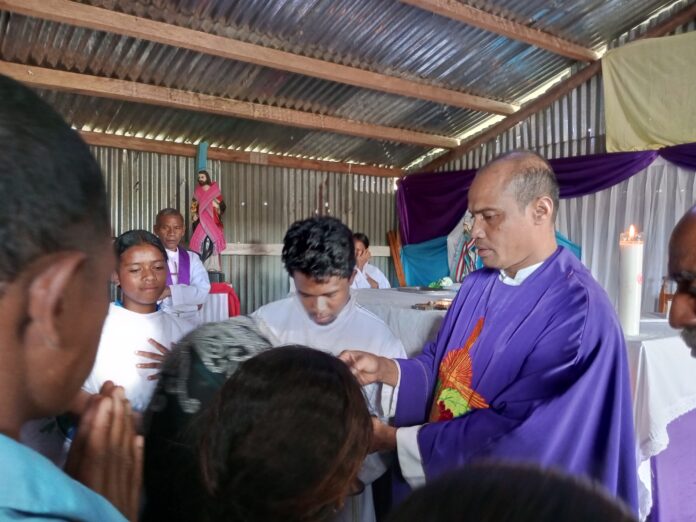 Enkuantu tuir observasaun Jornalista Likisa post nota katak misa ne’ebe preside husi Pe.Aderito da Costa Vilar Moreira iha kapela Baura suku Leorema Postu Bazartete Munisipiu Likisa,Sarani sira ho antusiamu partisipa misa no lori aifunan ba misa hodi hetan bensaun husi nai maromak hafoin sarani sira lori ba kari ai-funan iha semiterio no rate sira.